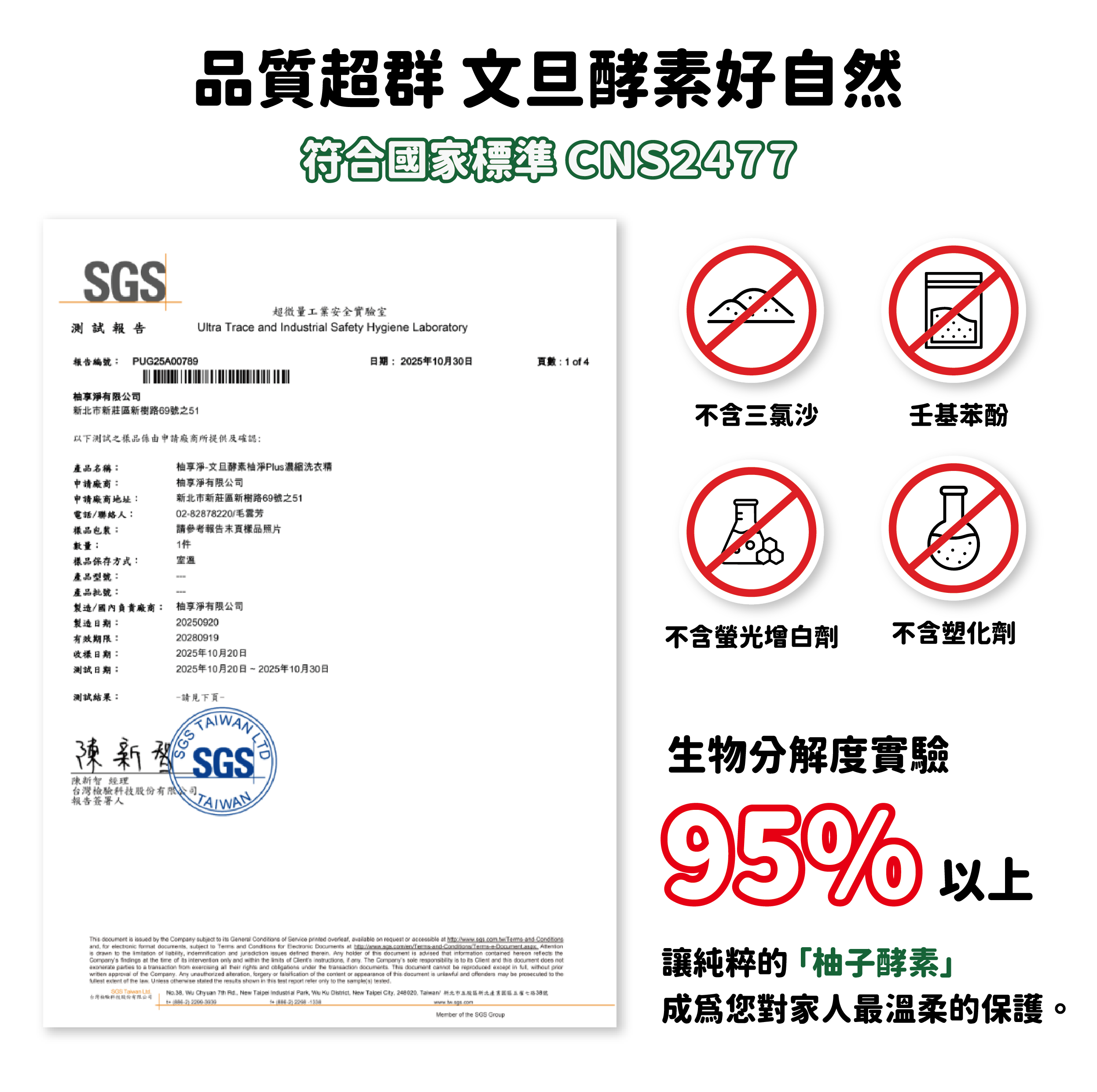 SGS檢驗報告 成分安全 微深物分解度/名稱 抗病毒/抗菌效果 文旦酵素柚淨濃縮洗衣精 文旦酵素柚淨Plus蔬果洗碗精 文旦酵素柚淨Plus寵物用地板清潔液 文旦酵素柚淨Plus寵物除臭噴霧 文旦酵素柚淨Plus居家除臭噴霧 文旦酵素柚淨Plus居家地板清潔液 Intertek認證 文旦酵素柚淨 Plus 除黴清潔泡沫 文旦酵素柚淨 Plus酵素洗碗精 文旦酵素柚淨 Plus水管清潔凝膠 文旦酵素柚淨 Plus 除水垢泡沫 文旦酵素柚淨 Plus 廚房清潔泡沫